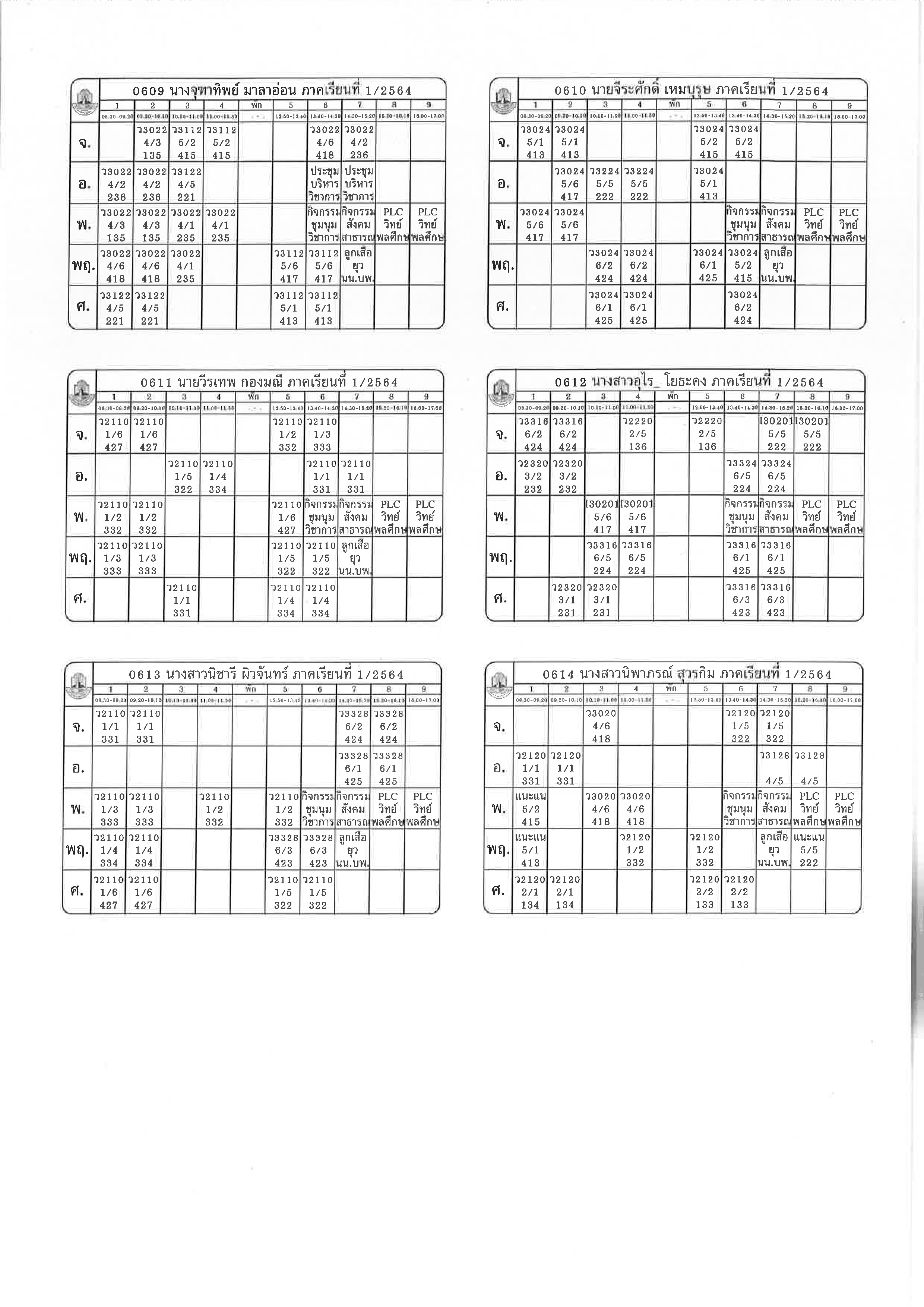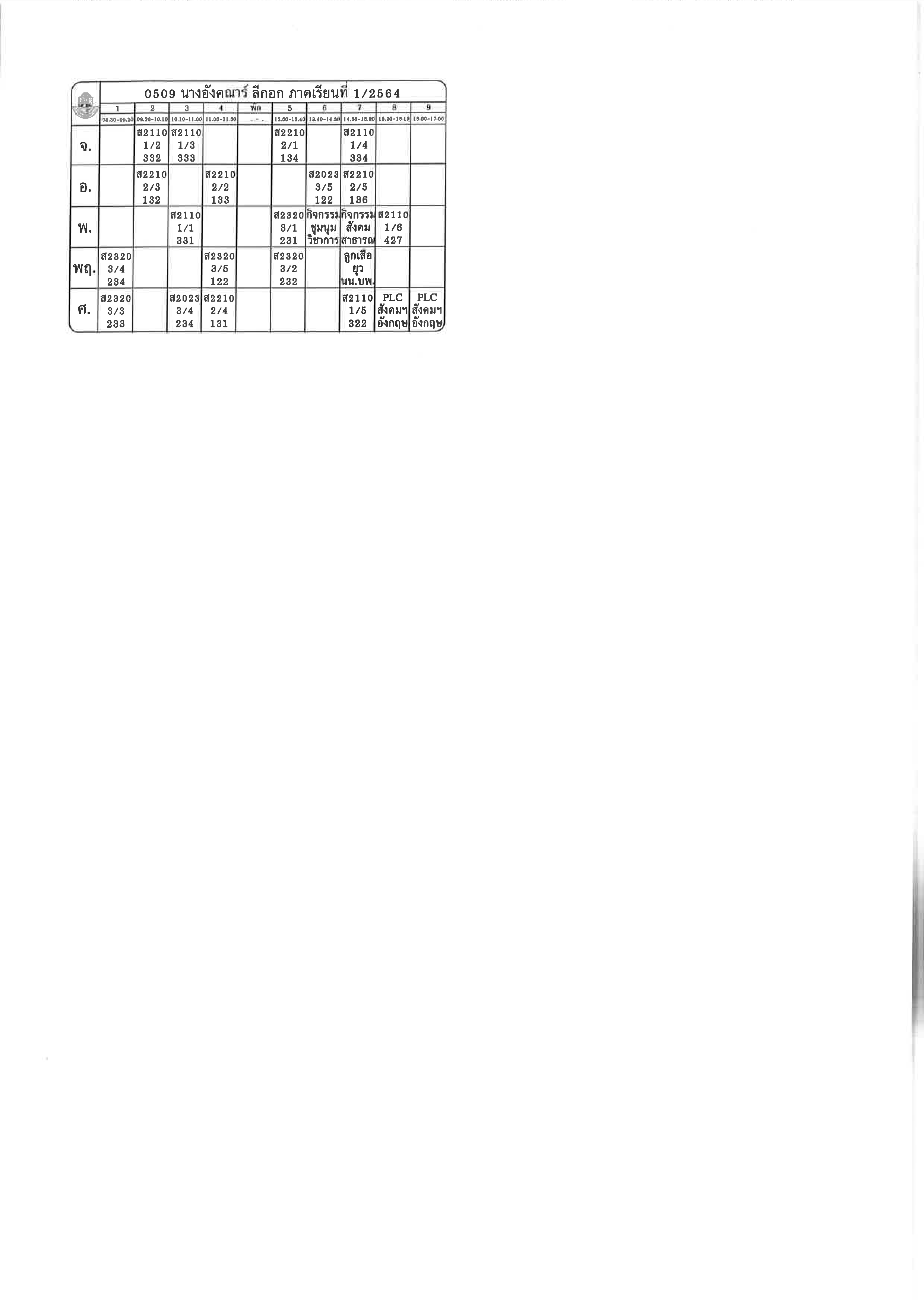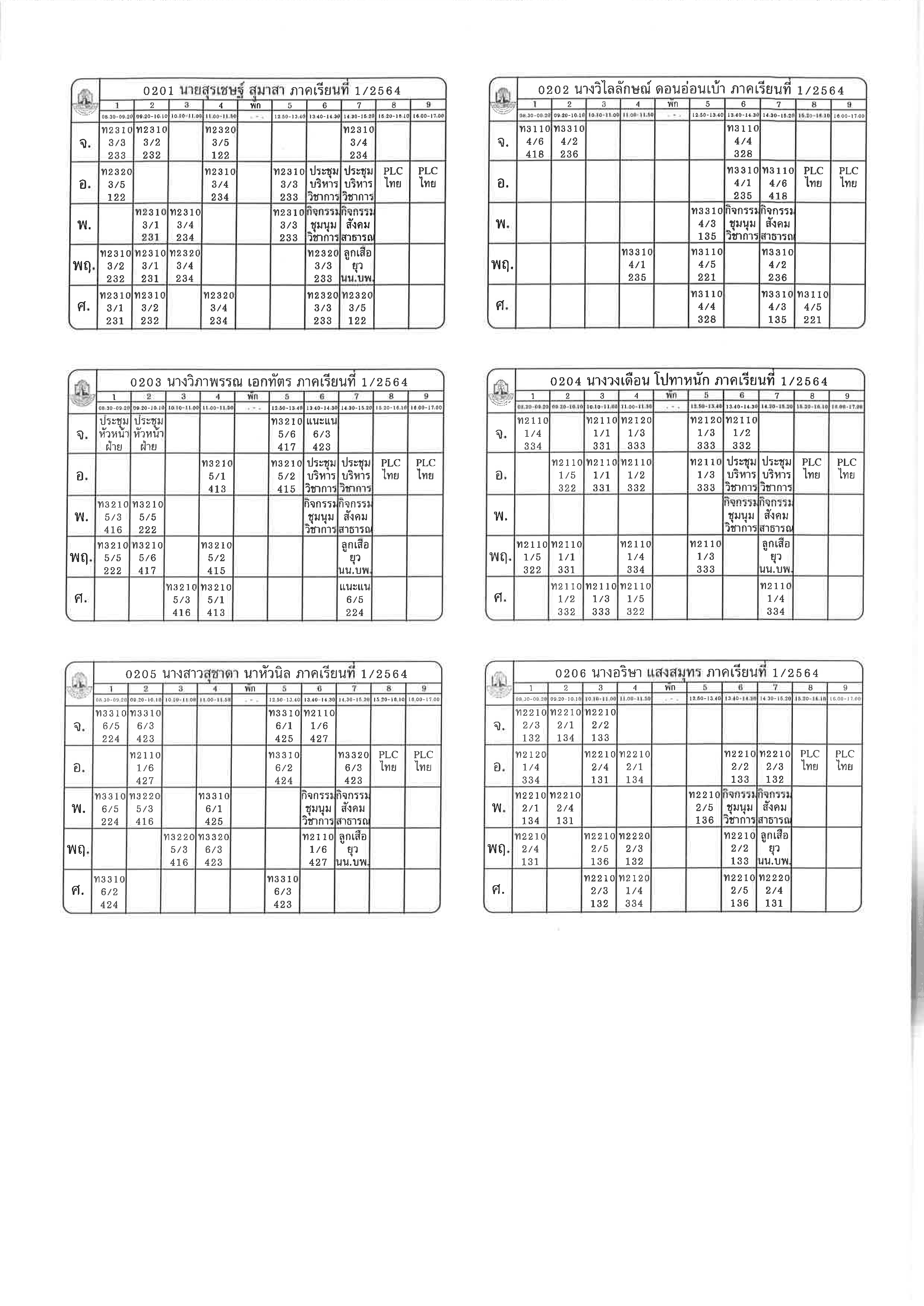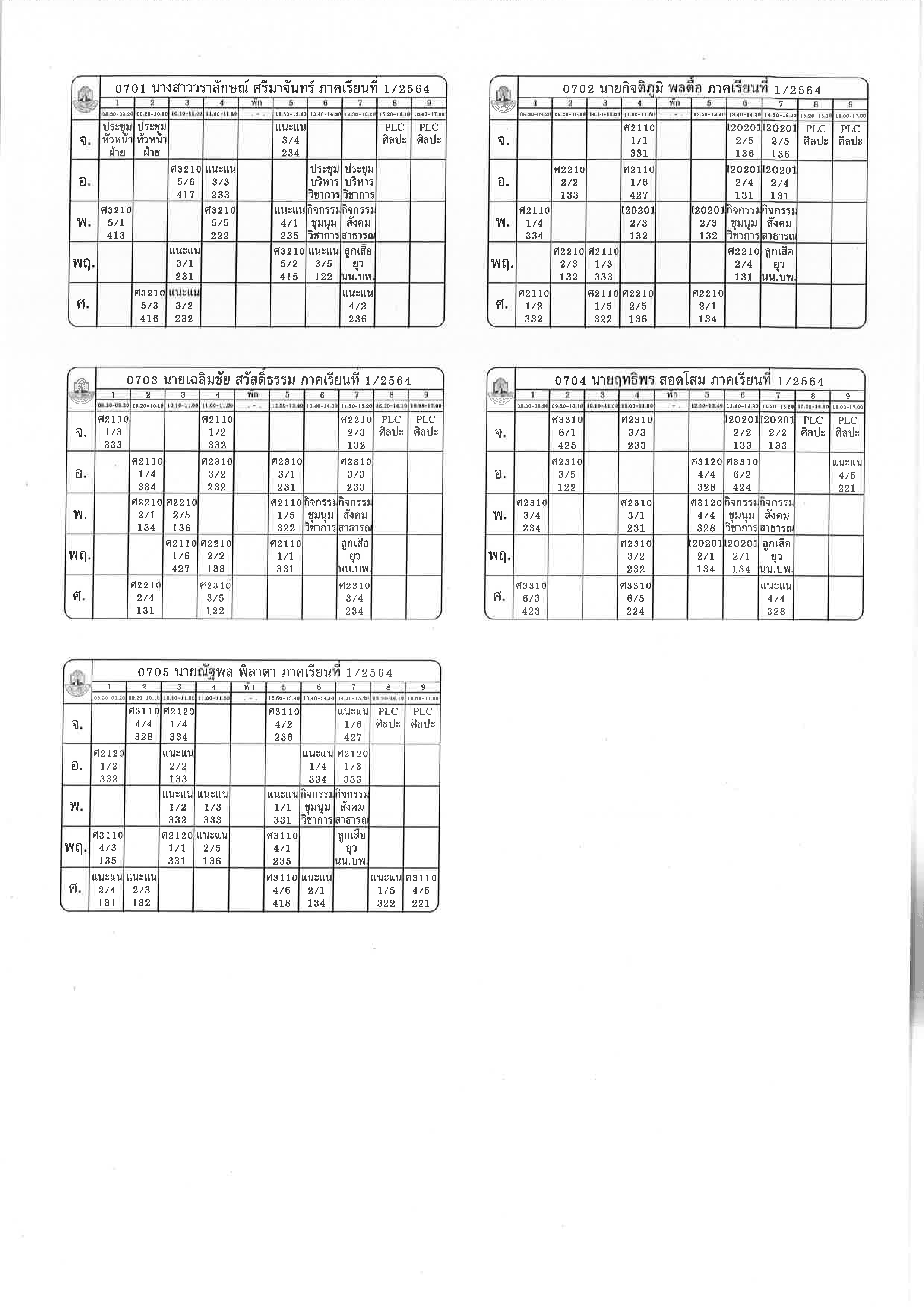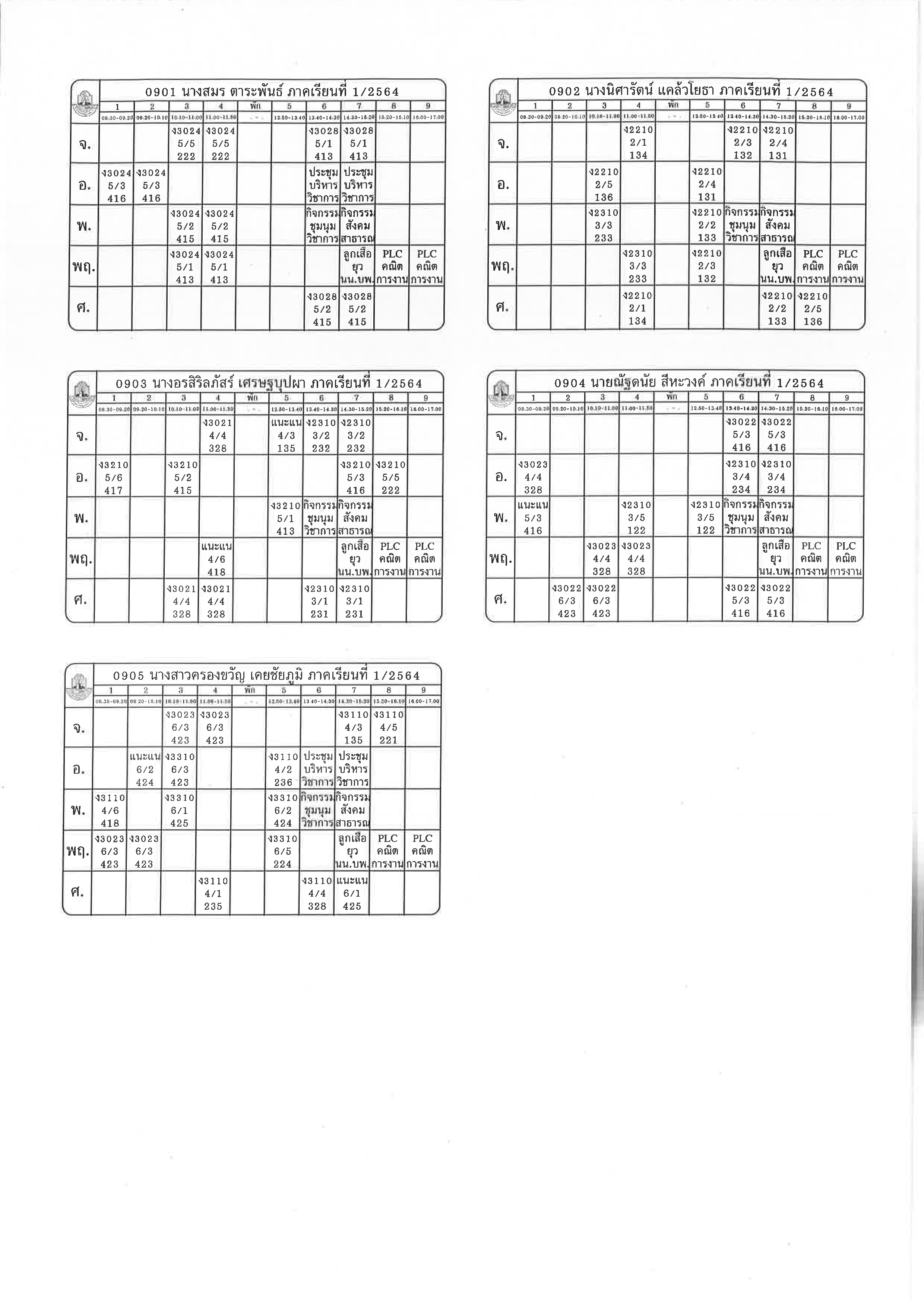 ตารางสอน 1-2564