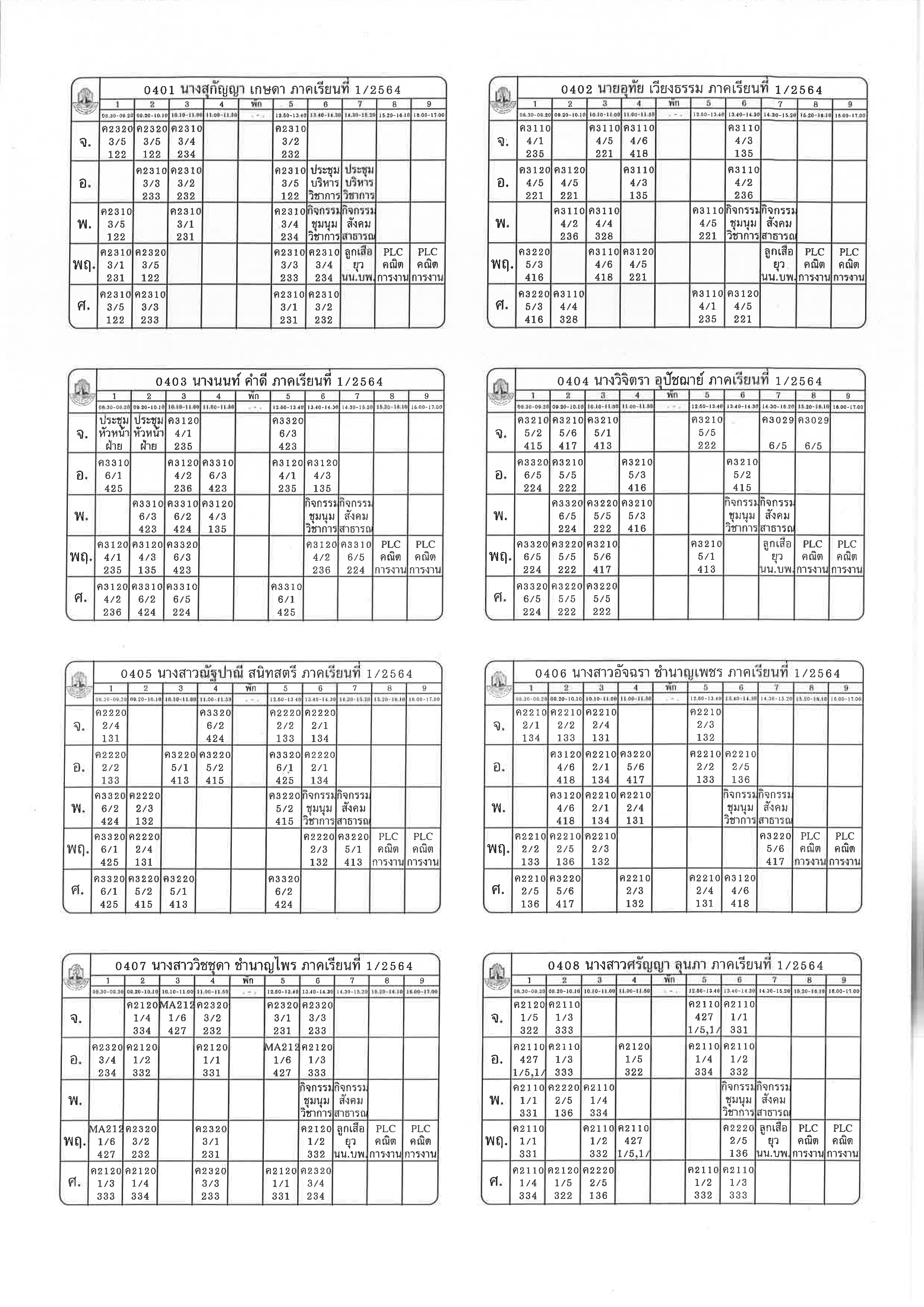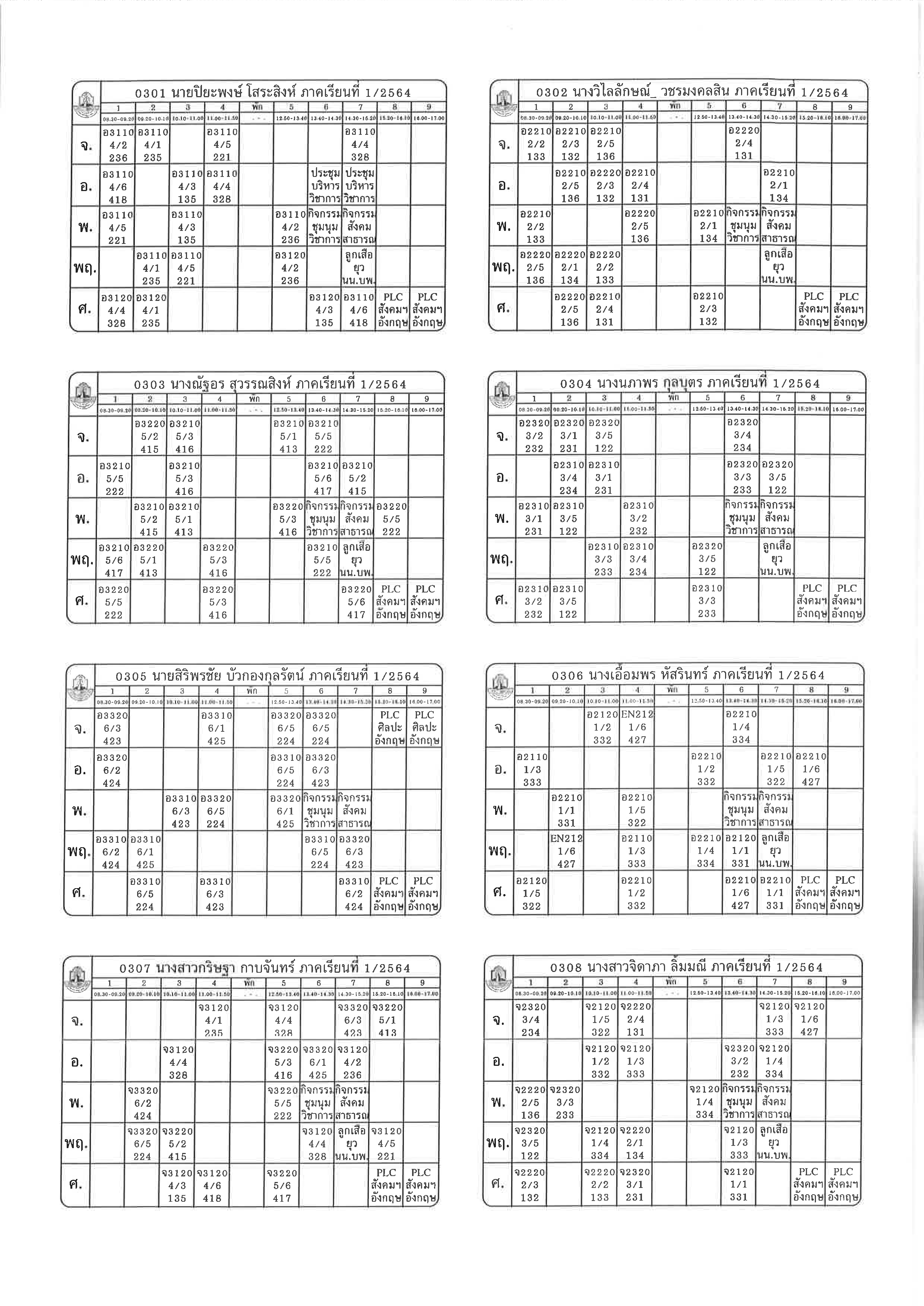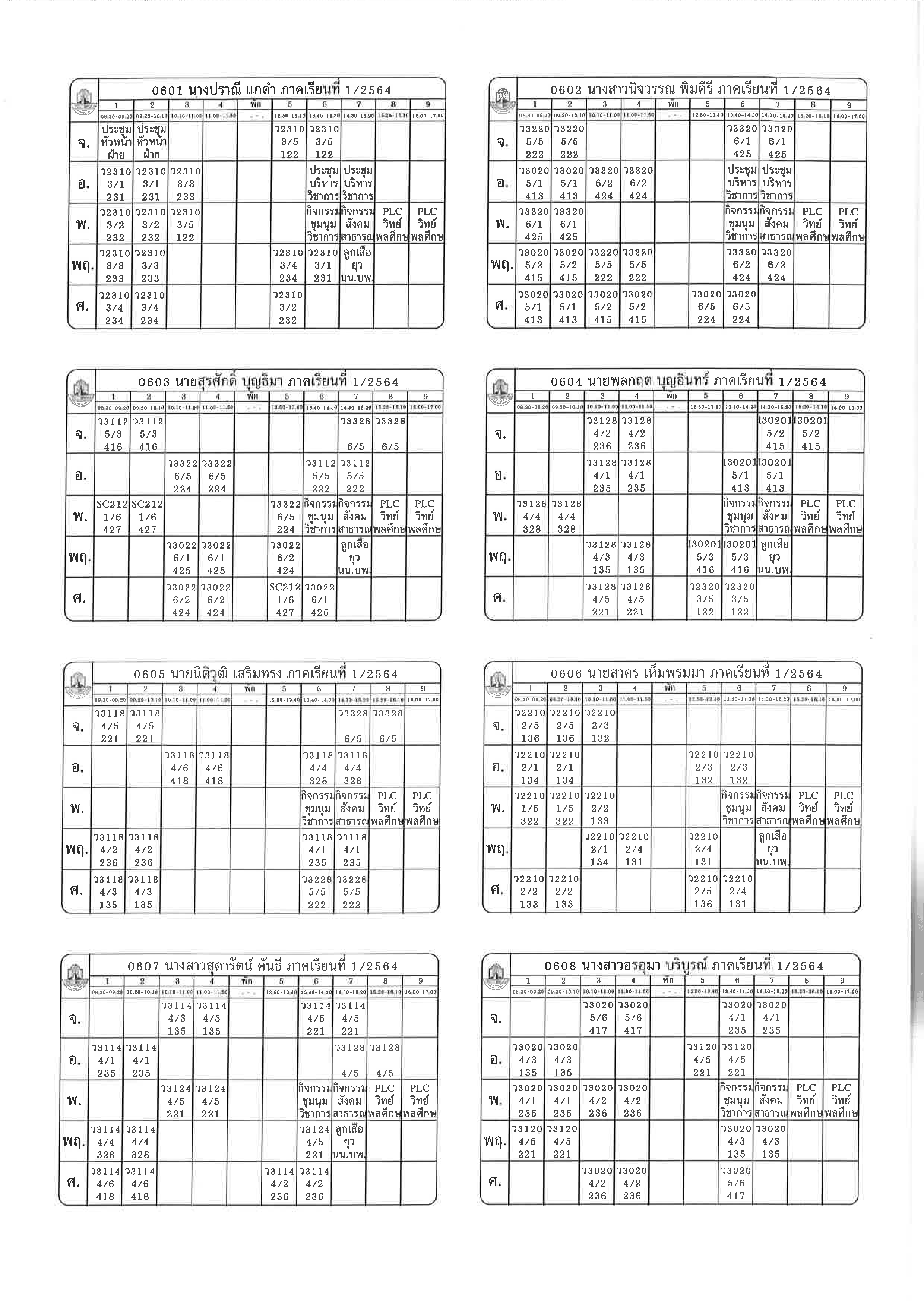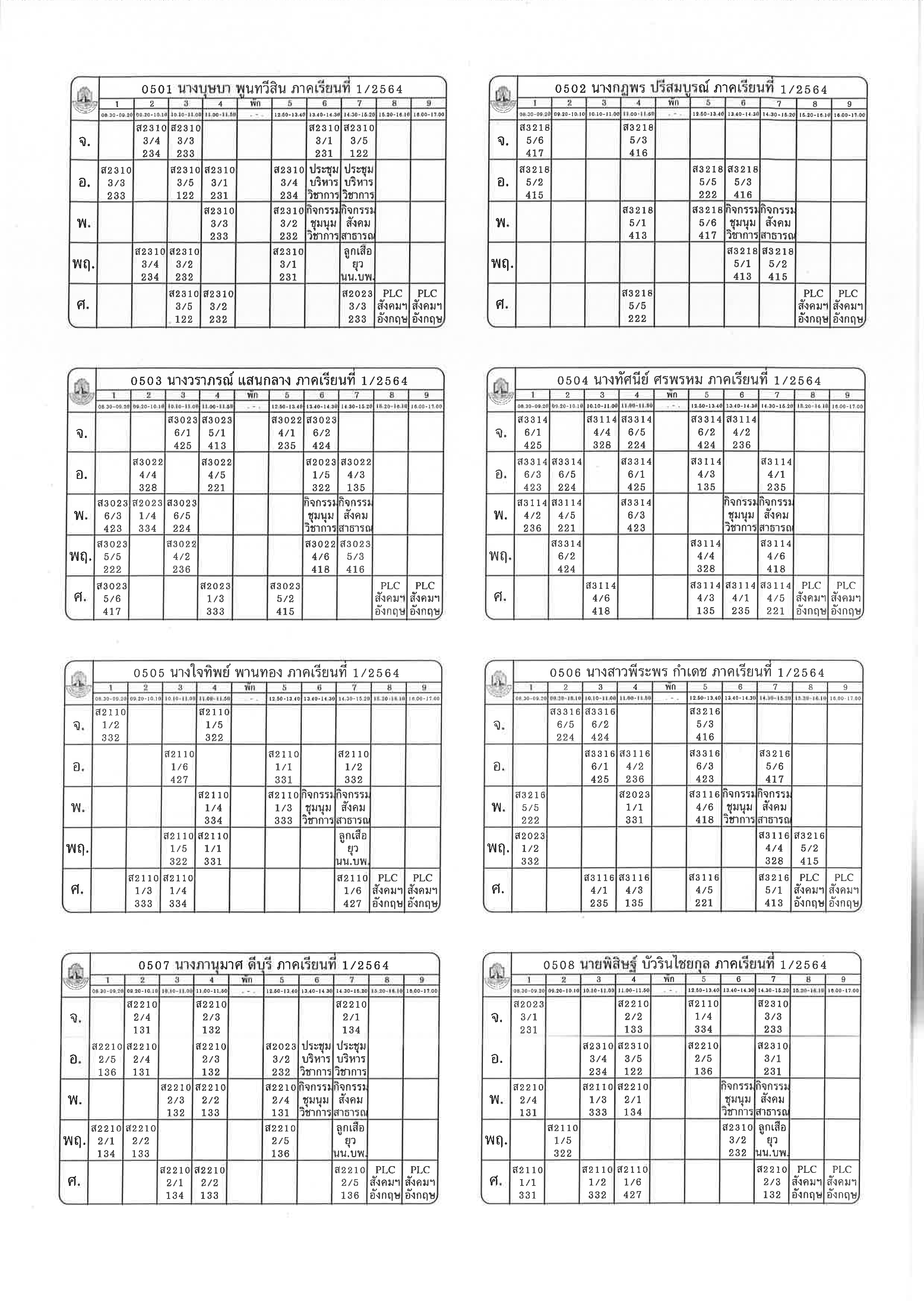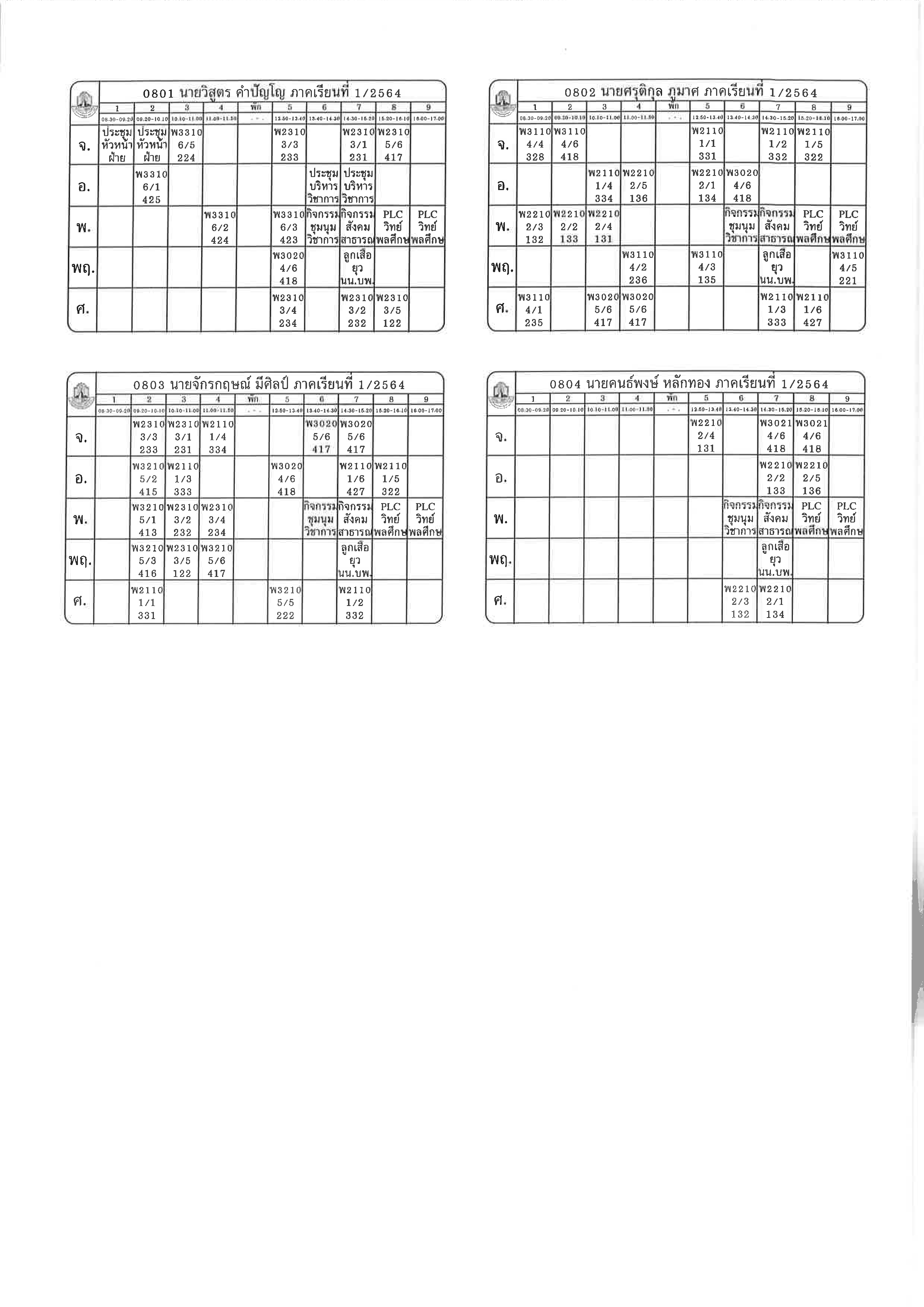 ตารางสอน 1-2564